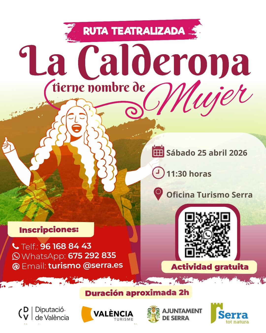 L’Ajuntament de Serra ha programat per al dissabte 25 d’abril de 2026 una ruta gratuïta. No et pots perdre la ruta teatralitzada “La Calderona té nom de dona”, que recorrerà els carrers de la nostra població.
